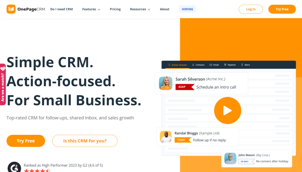 Affordable and easy to set up, OnePageCRM is perfect for small teams that need an efficient CRM without complexity.